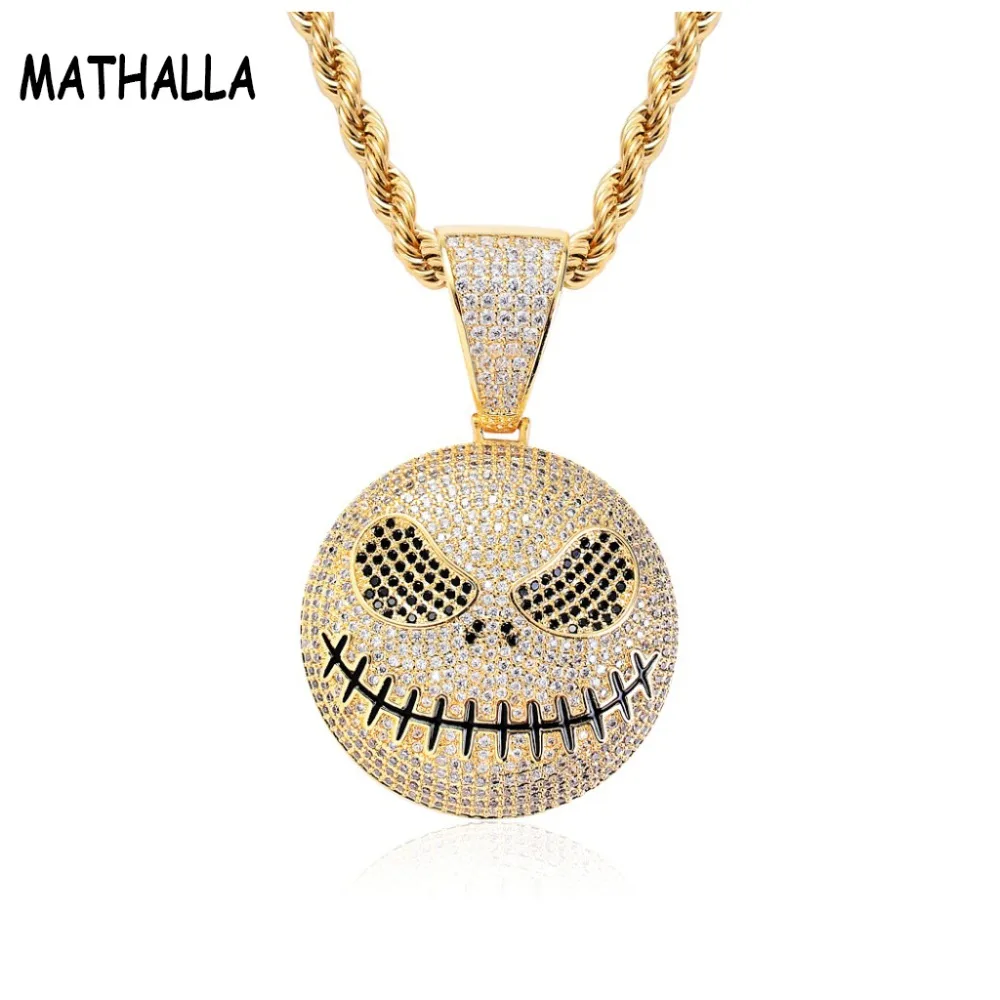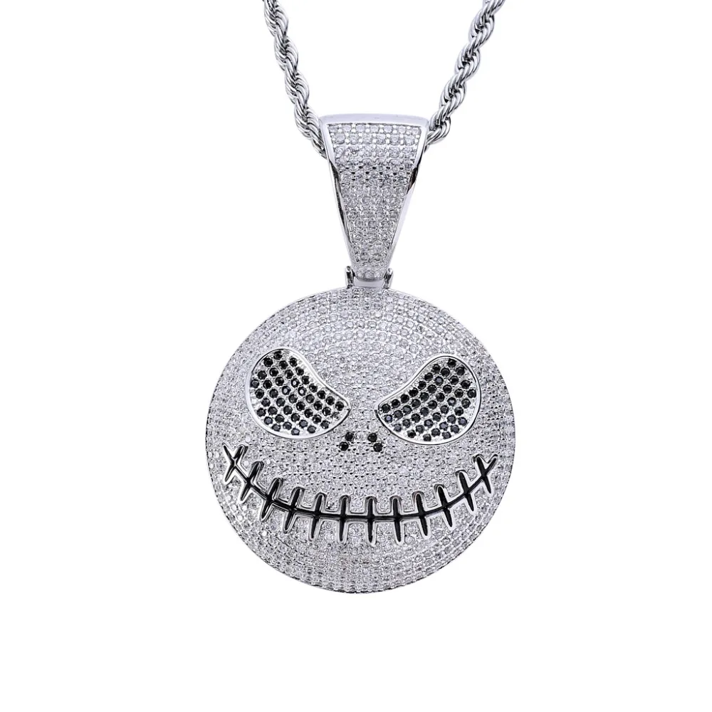 BEST Halloween Gift Brass Ghost Charm Iced Out CZ Stone Skull Head Grimacing Pendant Necklace Kalung Hip
