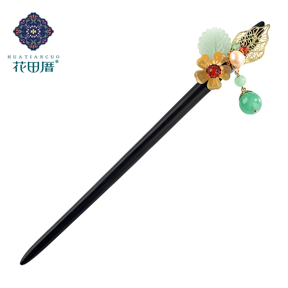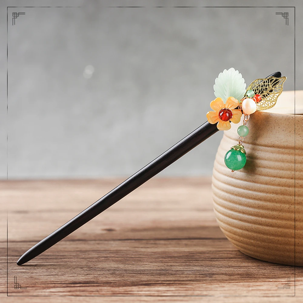Ethnic Handmade Hair Sticks Black And Ebony Red Stone Beads Freshwater Pearl White Green J ade Bead