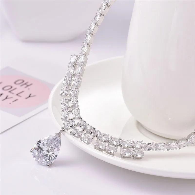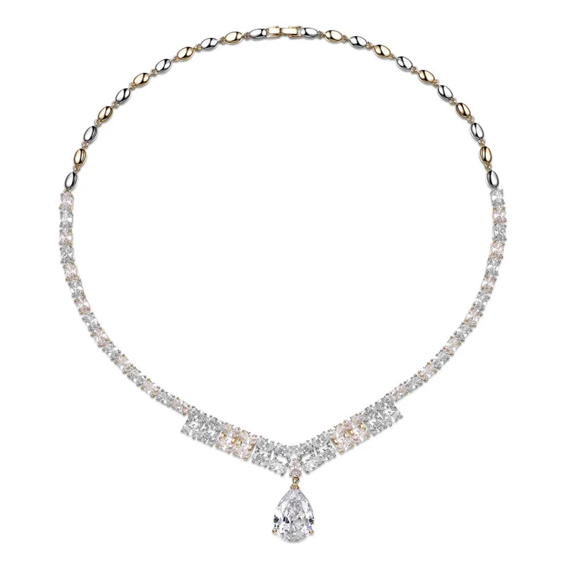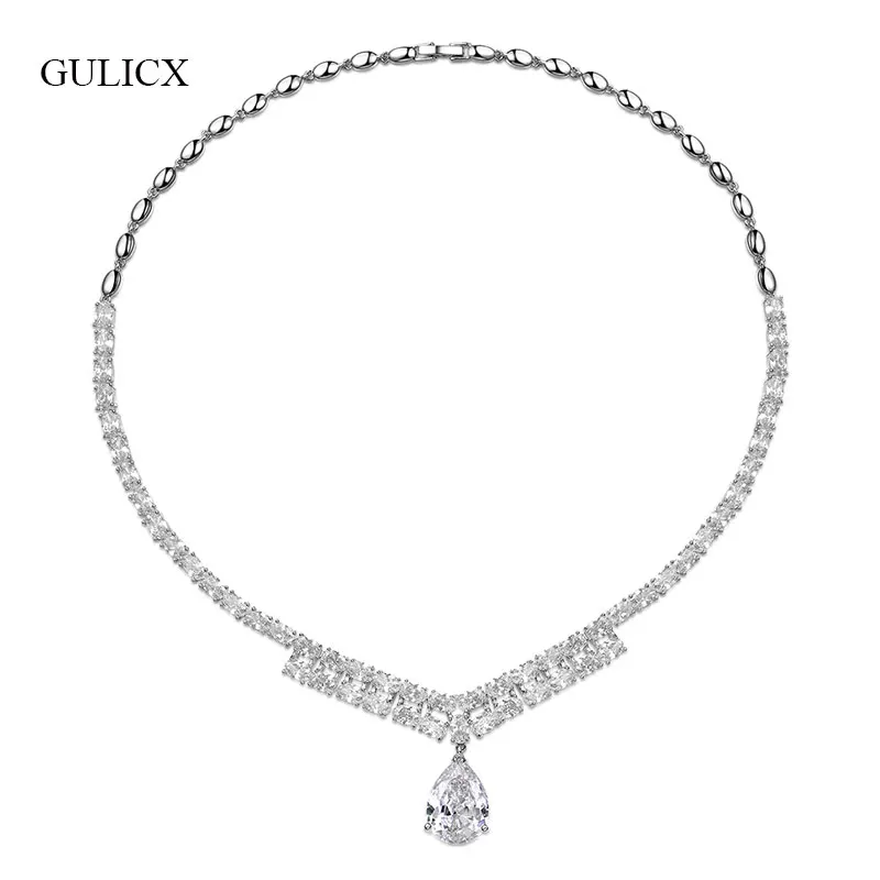 Best Quality GULICX Luxury Infinity Pendant Necklaces For Women Silver/Gold color Water Drop Pendant Wedding Eng