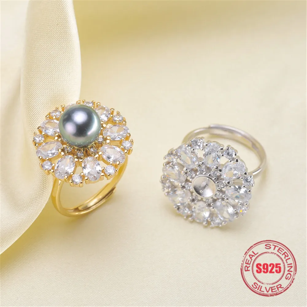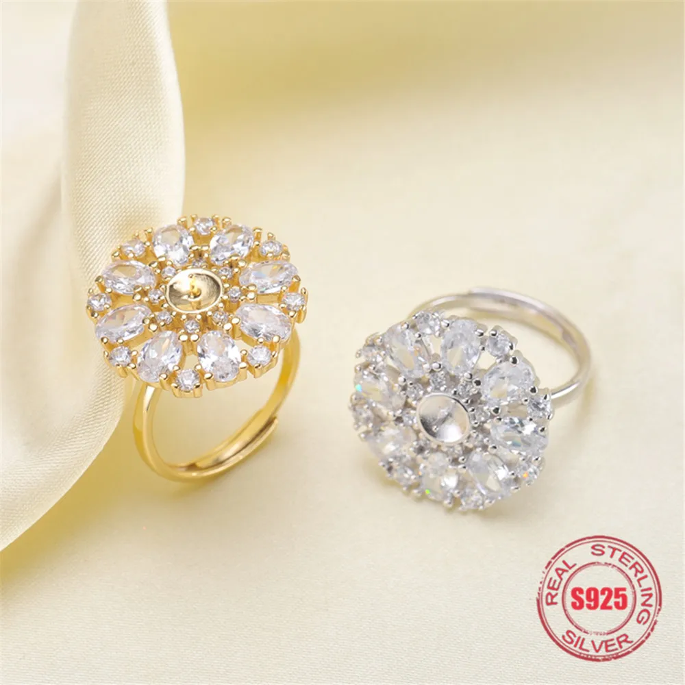 S925 Sterling Silver Fashion Heart Pearl Ring Accessory Adjustable Ring Mountings DIY Rings Jewelry