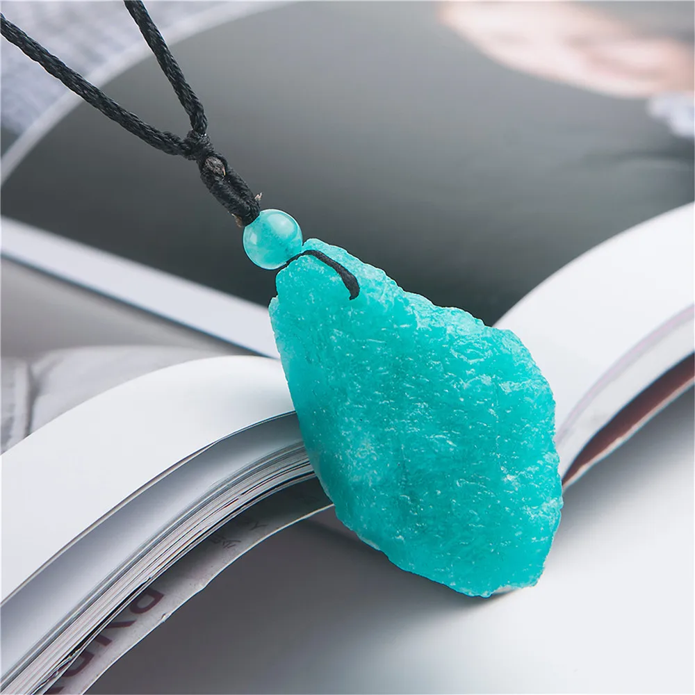 HIGH QUALITY Women Jewelry Pendant Natural Amazonite Gems Crystal Irregular Bead Jewelry Pendants Necklace