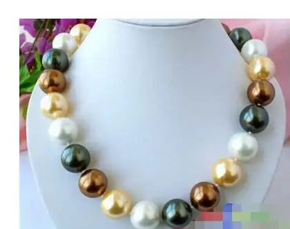 14MM Big Multicolor AAA South Sea Standard Round South Sea Shell Pearl Necklace Sweater chain Women