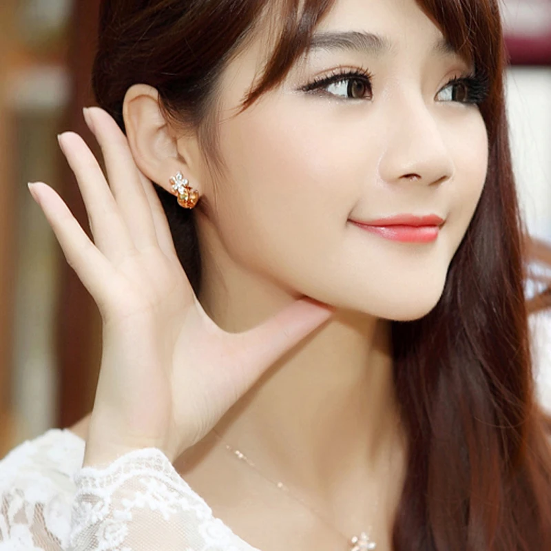 HOT Sale 18*11mm gold Austria yellow Crystal Shiny cute Five leaves flowers stud earrings Women jewelry High