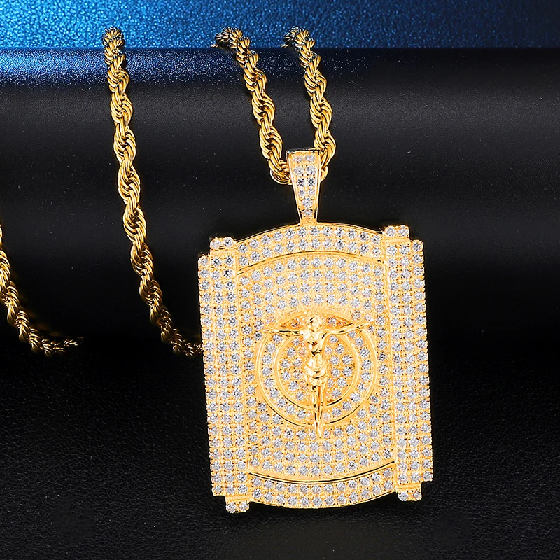 ORIGINAL Full Micro Paved AAA CZ Geometric Jesus Pendant Necklace For Men Gold Color Twisted Chain Necklaces