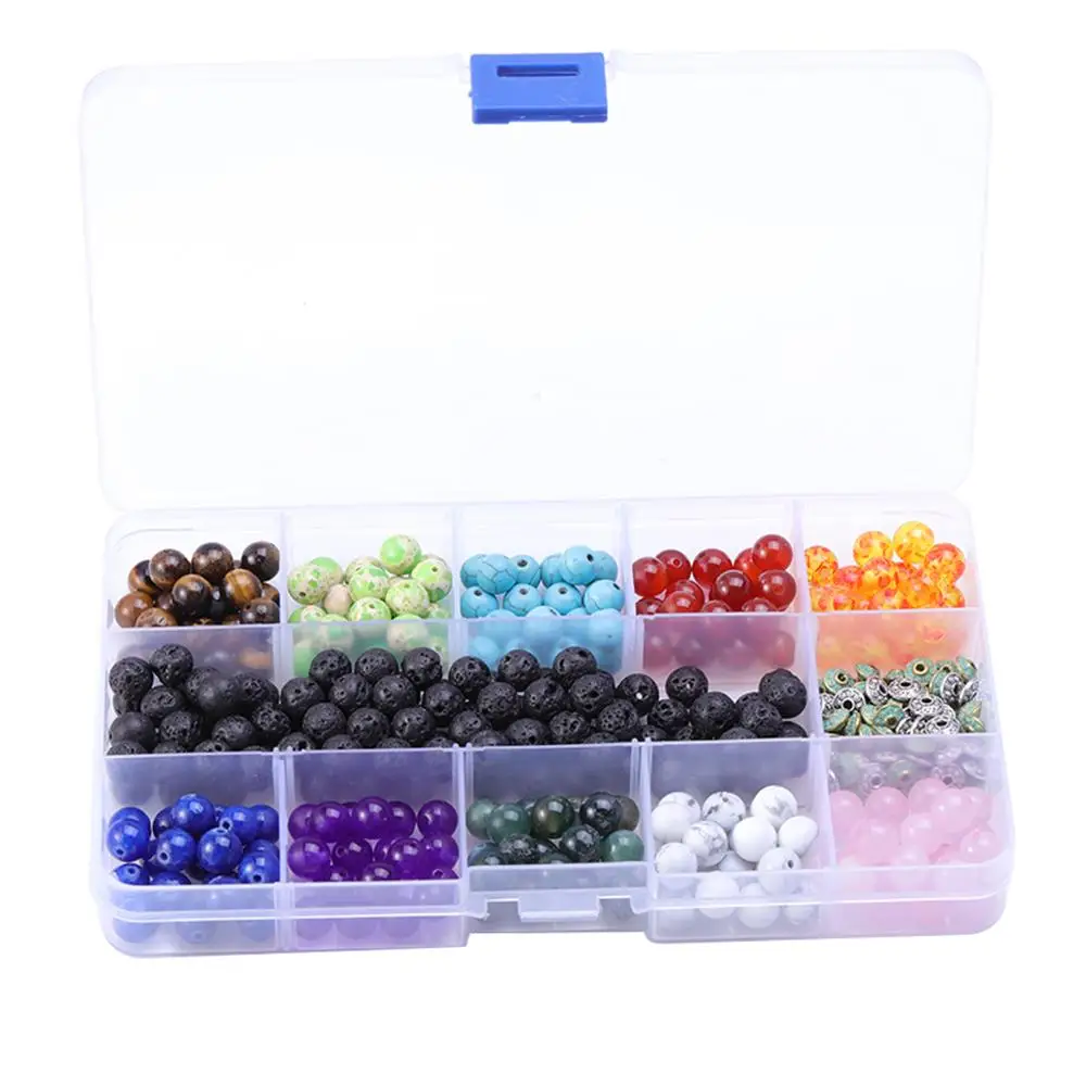 8mm Natural Stones Colorful Chakra Beads Volcanic Zinc Alloy Spacer Combination DIY Jewelry Finding