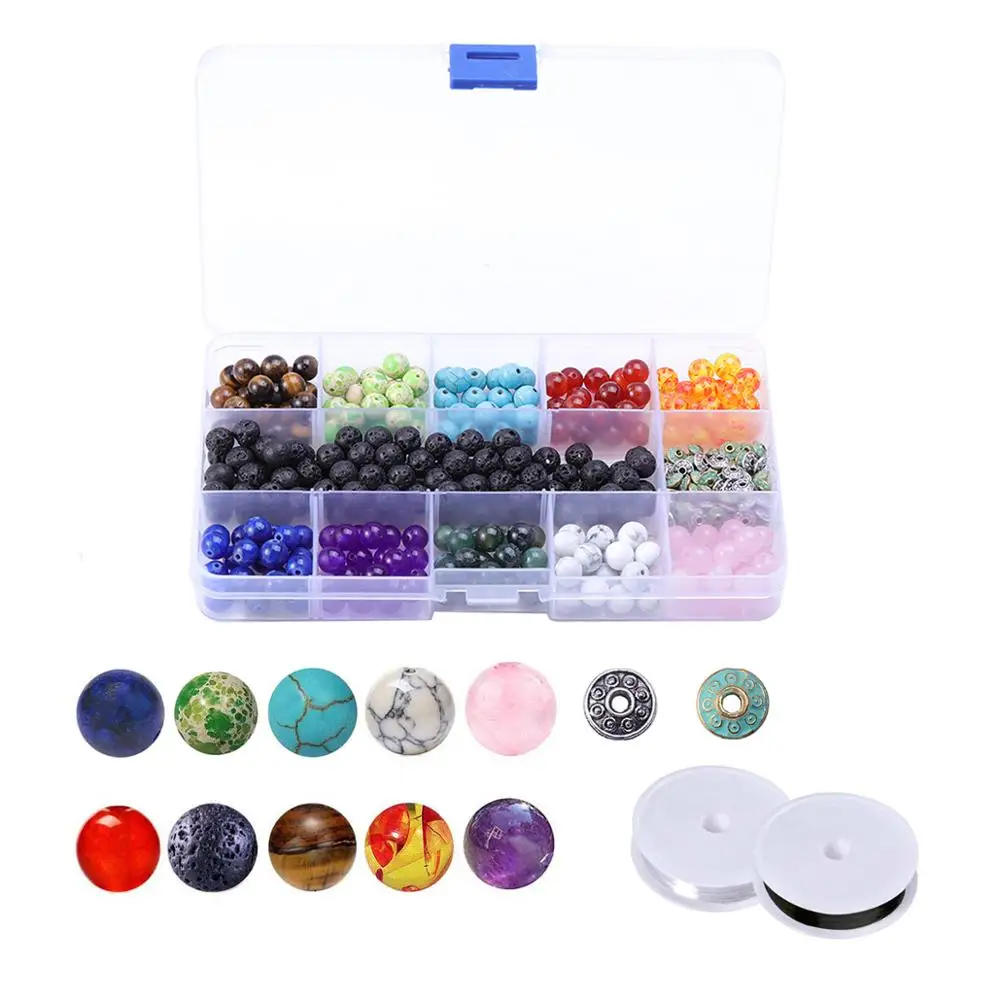 REVIEW TOP SELLER 8mm Natural Stones Colorful Chakra Beads Volcanic Zinc Alloy Spacer Combination DIY Jewelry Finding