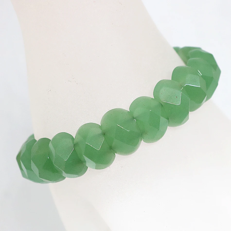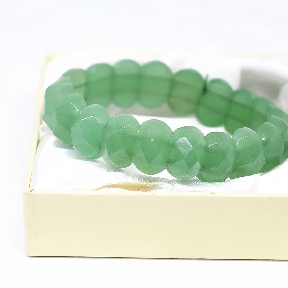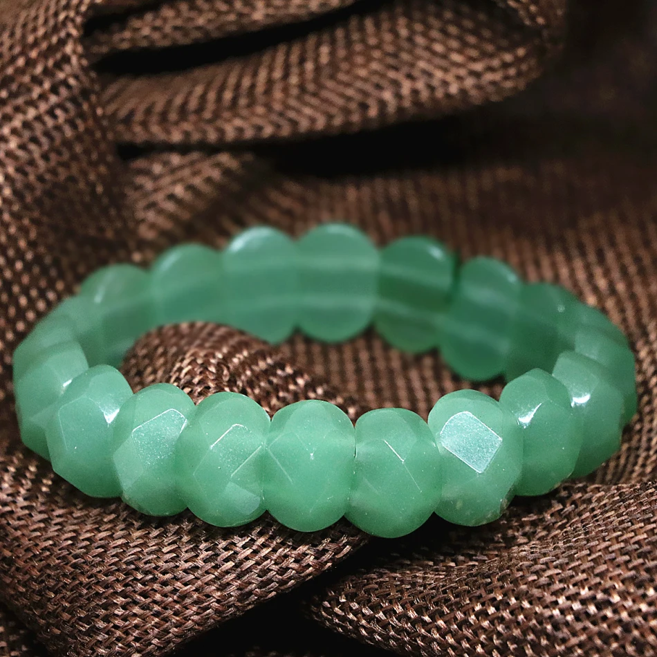 Fashion women bracelet 10*14mm natural green stone jades chalcedony rectangle faceted beads factory