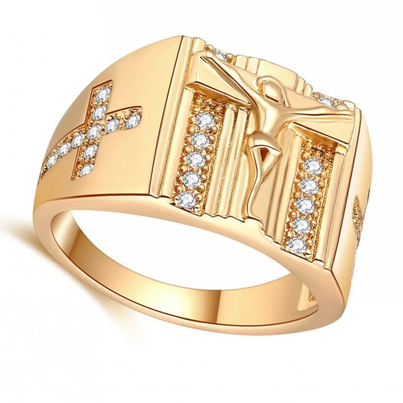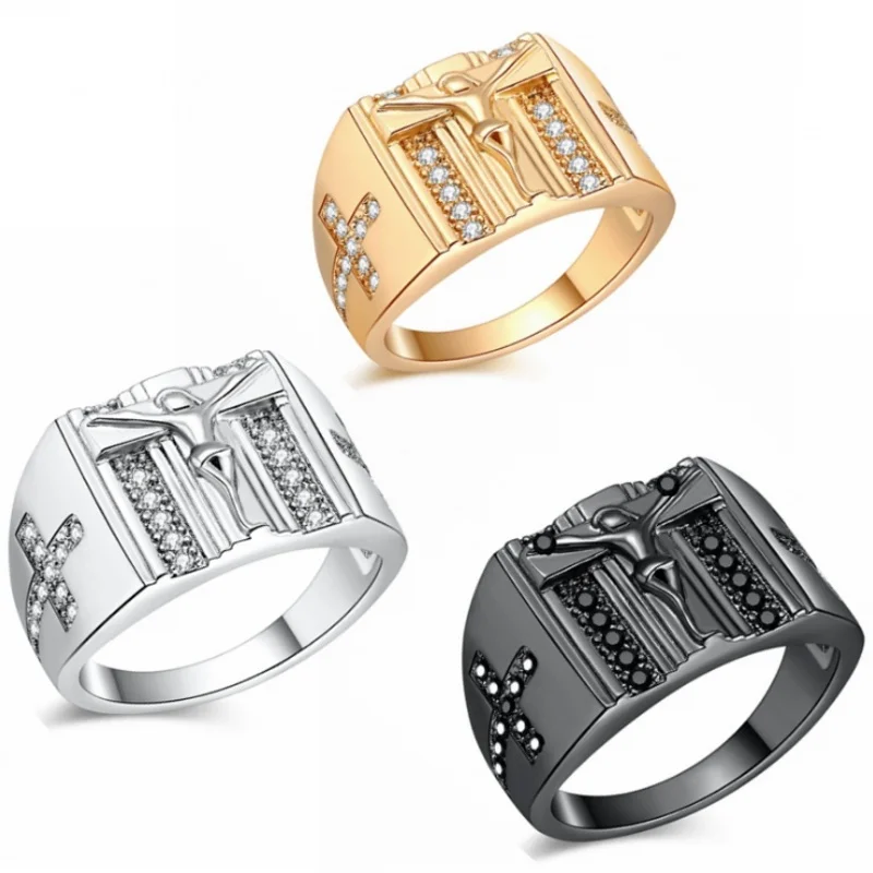 High Quality Jewelry Rings Men AAA Cubic Zirconia Jesus Cross copper rings For men Wedding Ring Gif