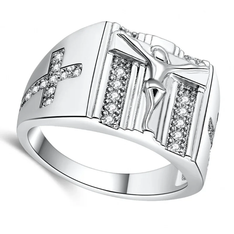 TOP High Quality Jewelry Rings Men AAA Cubic Zirconia Jesus Cross copper rings For men Wedding Ring Gif
